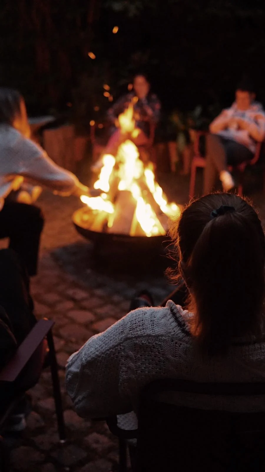 Mantra circle, and a bonfire under the stars — warmth, laughter, and genuine togetherness.