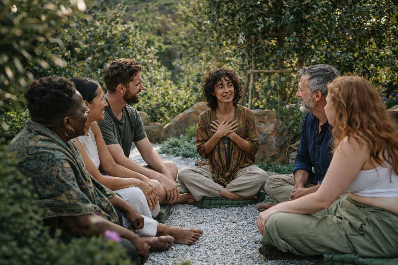 After morning yoga and breakfast, we gather one last time: sharing what yesterday stirred, moving through inquiry and Authentic Dancing, and sitting with the deeper question of what it means to truly be seen by another.